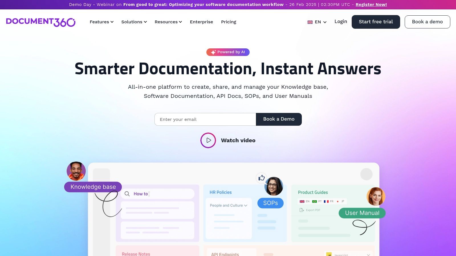 Document360 is a knowledge management system built specifically for software documentation and technical content. For Obsidian users working on complex technical projects or managing detailed workflows, it serves as a dedicated space for technical documentation, separate from personal notes and wikis.