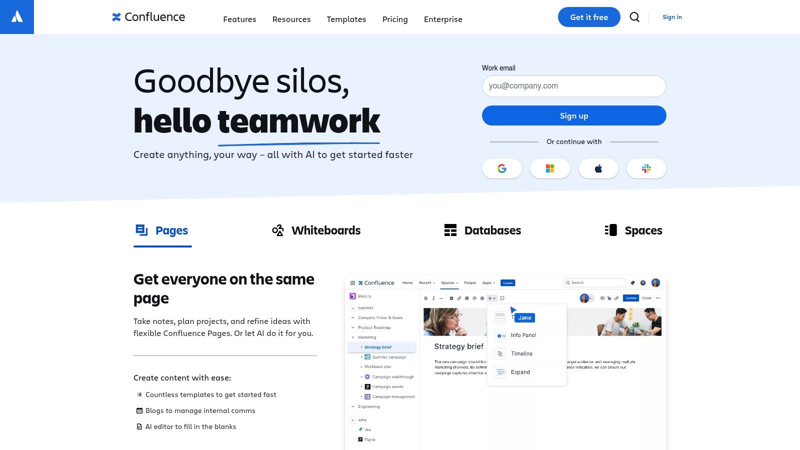 Confluence is a team workspace from Atlassian that excels at collaborative document management and knowledge sharing. It's particularly useful for teams looking to move beyond personal note-taking to organization-wide knowledge management.