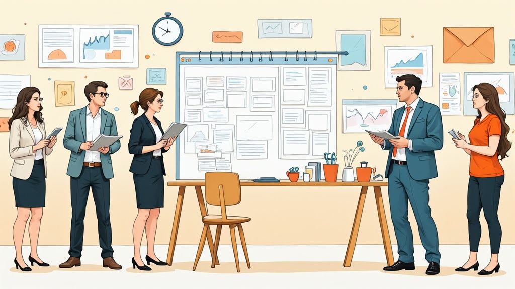 Start by finding what slows your projects down. Common issues include excessive meetings, complex approval chains, and unclear team roles. Picture a design team waiting days for simple approvals while other work sits idle. To spot these problems, map out your current workflow step-by-step. This simple visualization often reveals hidden slowdowns that weren't obvious before.