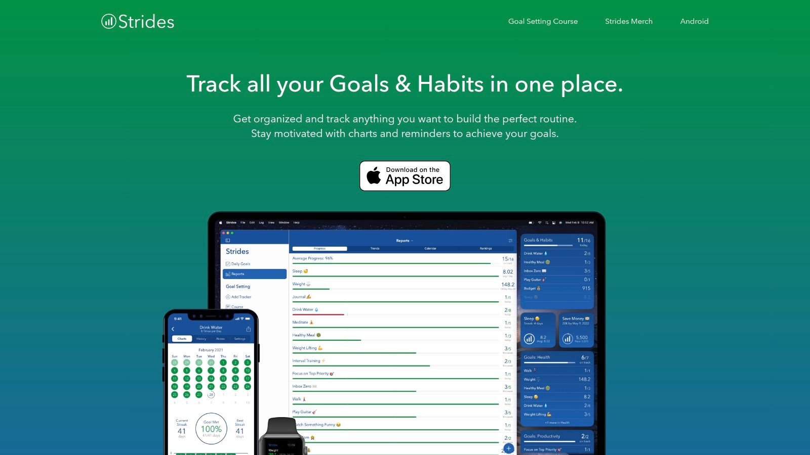 Strides is perfect for goal-oriented individuals who appreciate seeing their data visualized in clear, actionable charts. Its structured setup, including over 150 templates and a SMART goal workflow, guides users in setting effective, measurable objectives. The user experience is clean and intuitive, especially within the Apple ecosystem where it shines.