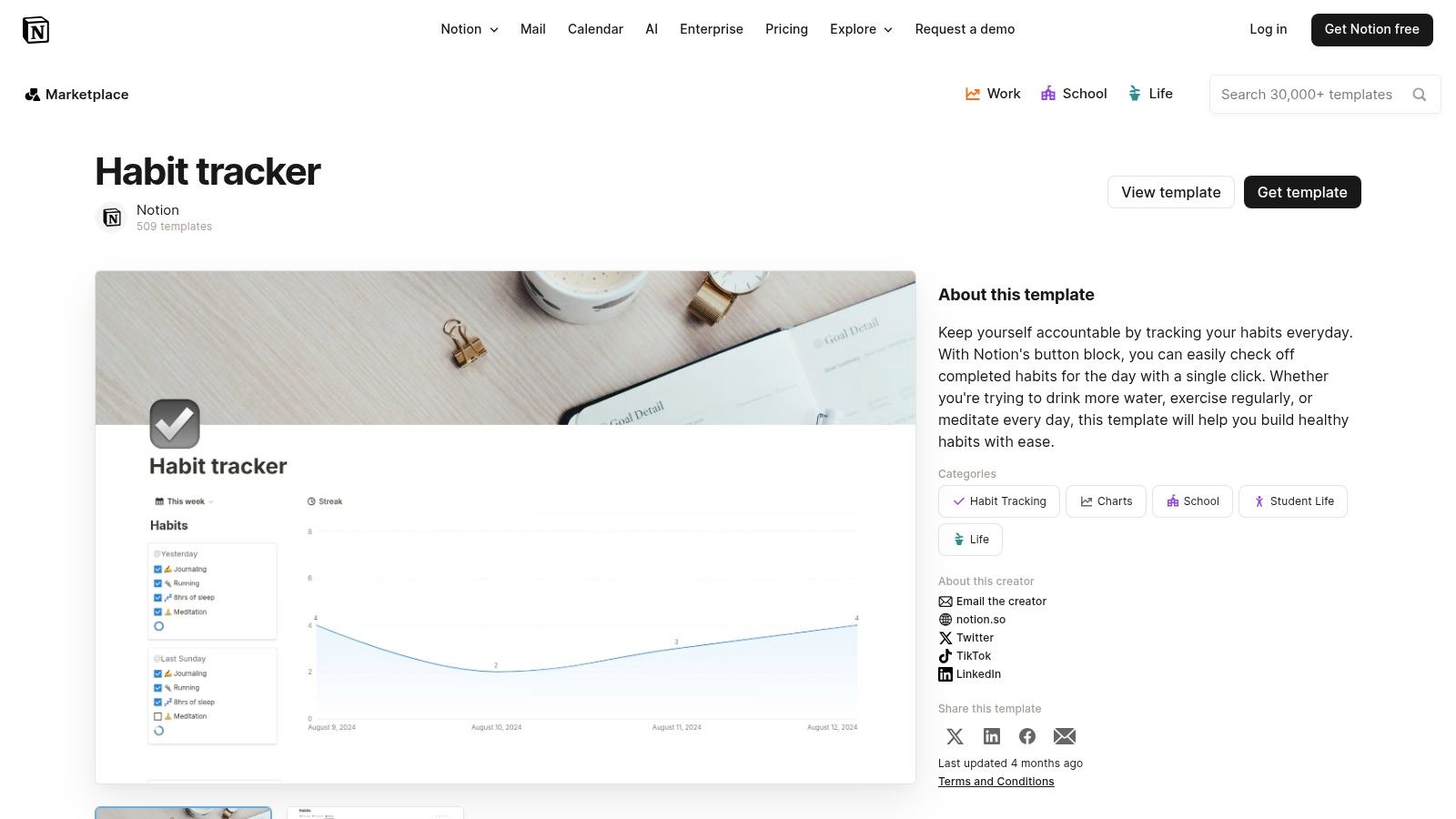 For those who already use Notion as a central "second brain" or workspace, building a habit tracker directly within it is an incredibly powerful option. The official Notion Template Marketplace offers a wide array of habit tracker templates, many of which are free. This approach allows for unparalleled customization, letting you integrate your daily habits directly with your projects, notes, and long-term goals, all within one unified system.