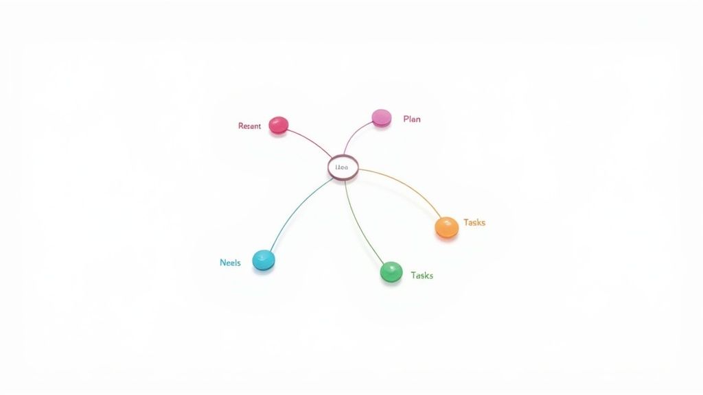 Mind Mapping is a dynamic, non-linear note-taking method that mirrors the brain's natural way of thinking. Popularized by Tony Buzan, this system starts with a central concept and radiates outwards with associated ideas, creating a visually intuitive map. Instead of capturing information in a rigid, top-down list, it organizes thoughts organically, making it a strong candidate for the best note taking system for brainstorming, planning, and creative problem-solving.