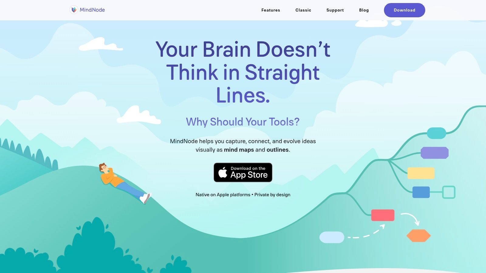MindNode is a visually stunning and intuitive mind-mapping tool that excels at turning chaotic thoughts into structured plans. It's designed for brainstorming, outlining, and visualizing complex ideas, making it an ideal first step in any creative or planning process. The appβs clean interface and seamless iCloud sync across Apple devices make it a friction-free experience for capturing inspiration whenever it strikes.
