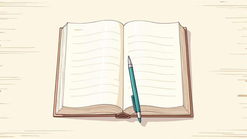 Once it's enabled, you can fire up a new daily note with a quick command or a single click. But let’s be real, a blank page isn’t very inspiring. The real magic happens when you move beyond the default and create a template. A good template transforms this from a chore into an automatic, guided process that practically runs itself.