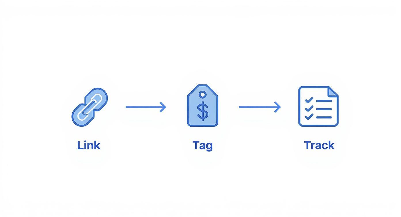 This infographic really captures the simple but powerful workflow we've been building—linking, tagging, and now, automatically tracking your tasks.