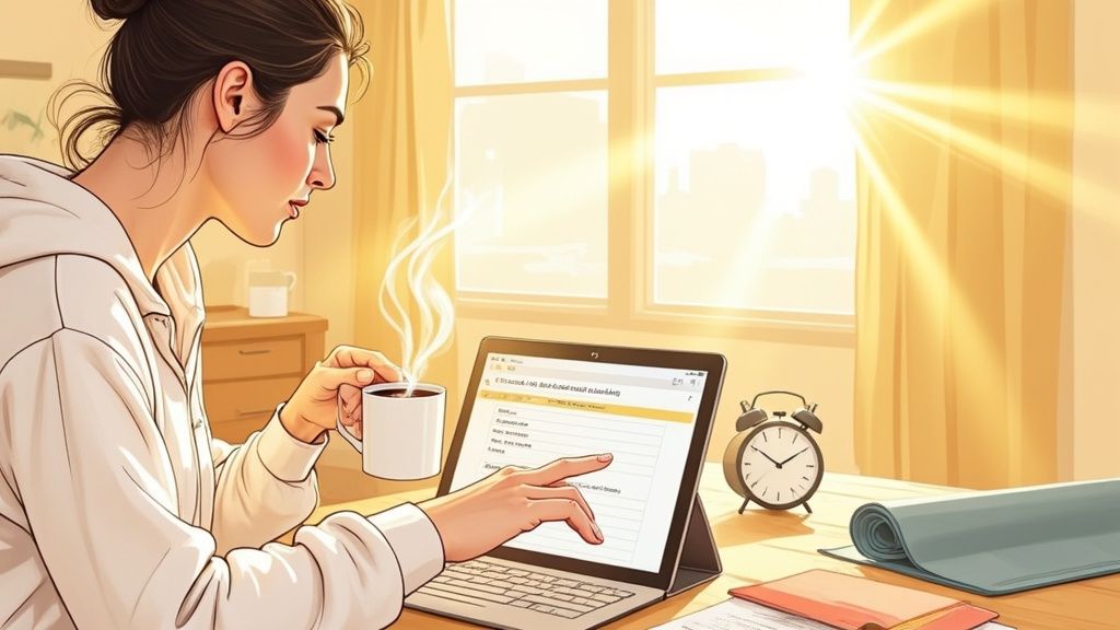 A lot of people push back on the idea of a "morning routine" because they picture a rigid, unforgiving schedule. The trick is to see it not as a strict checklist but as a personal framework for living with intention. A well-designed routine automates those basic, foundational decisions, freeing up your brainpower for the more important stuff later in the day.