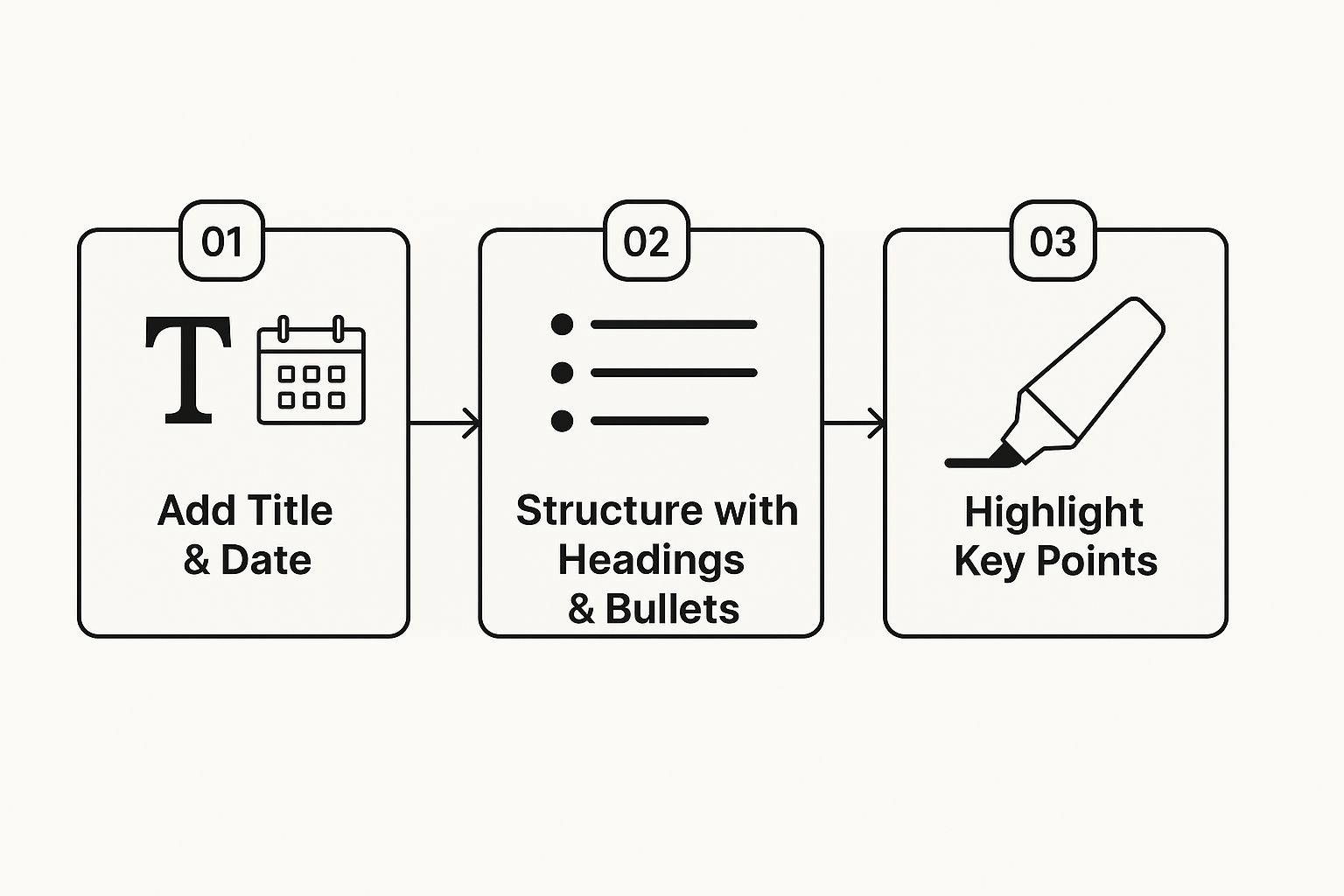 As the visual guide shows, effective organization starts with the basics—a clear title, logical formatting, and highlighting what matters—before you even think about filing it away.