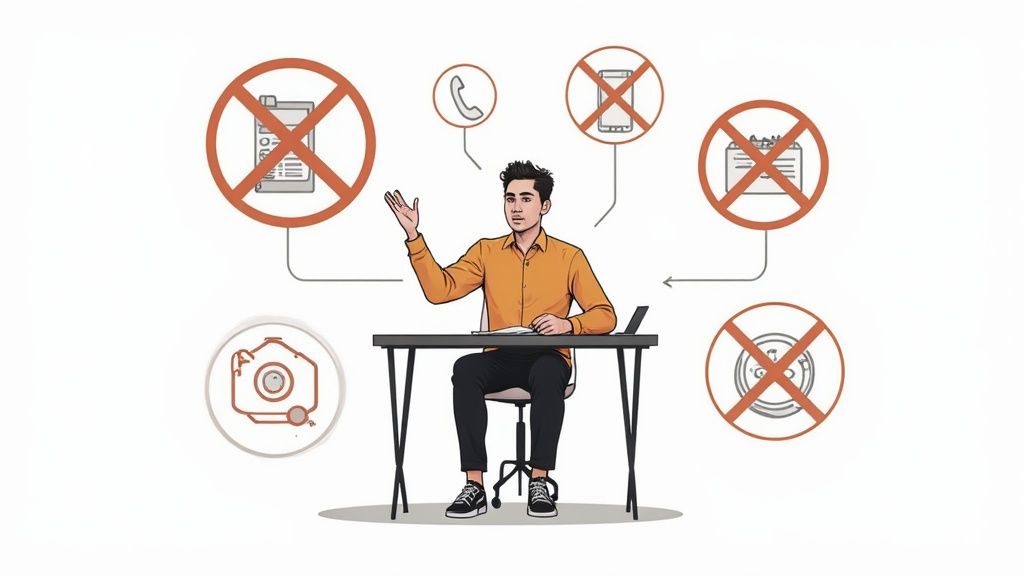 An effective time-blocked schedule is your first line of defense against distractions. When you see "9 AM - 11 AM: Draft Project Proposal" on your calendar, you're less likely to get sidetracked by a random email notification.