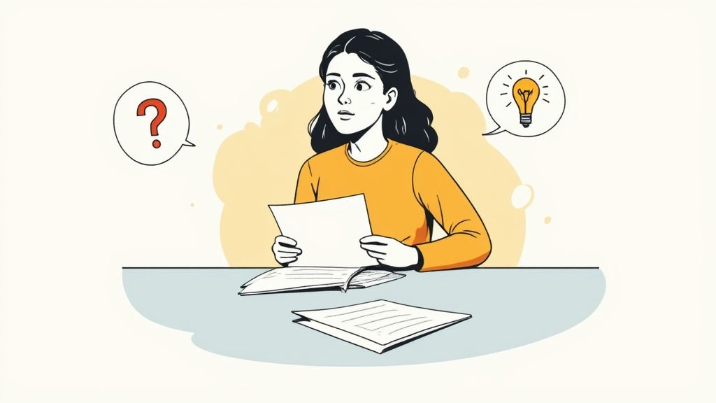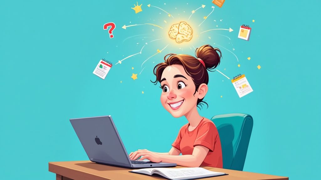 One of the easiest ways to start practicing active recall is to change how you structure your notes. Stop writing passive summaries. Instead, reframe your key takeaways as questions. This tiny shift turns a document you just read into an interactive study tool you can use to test yourself.
