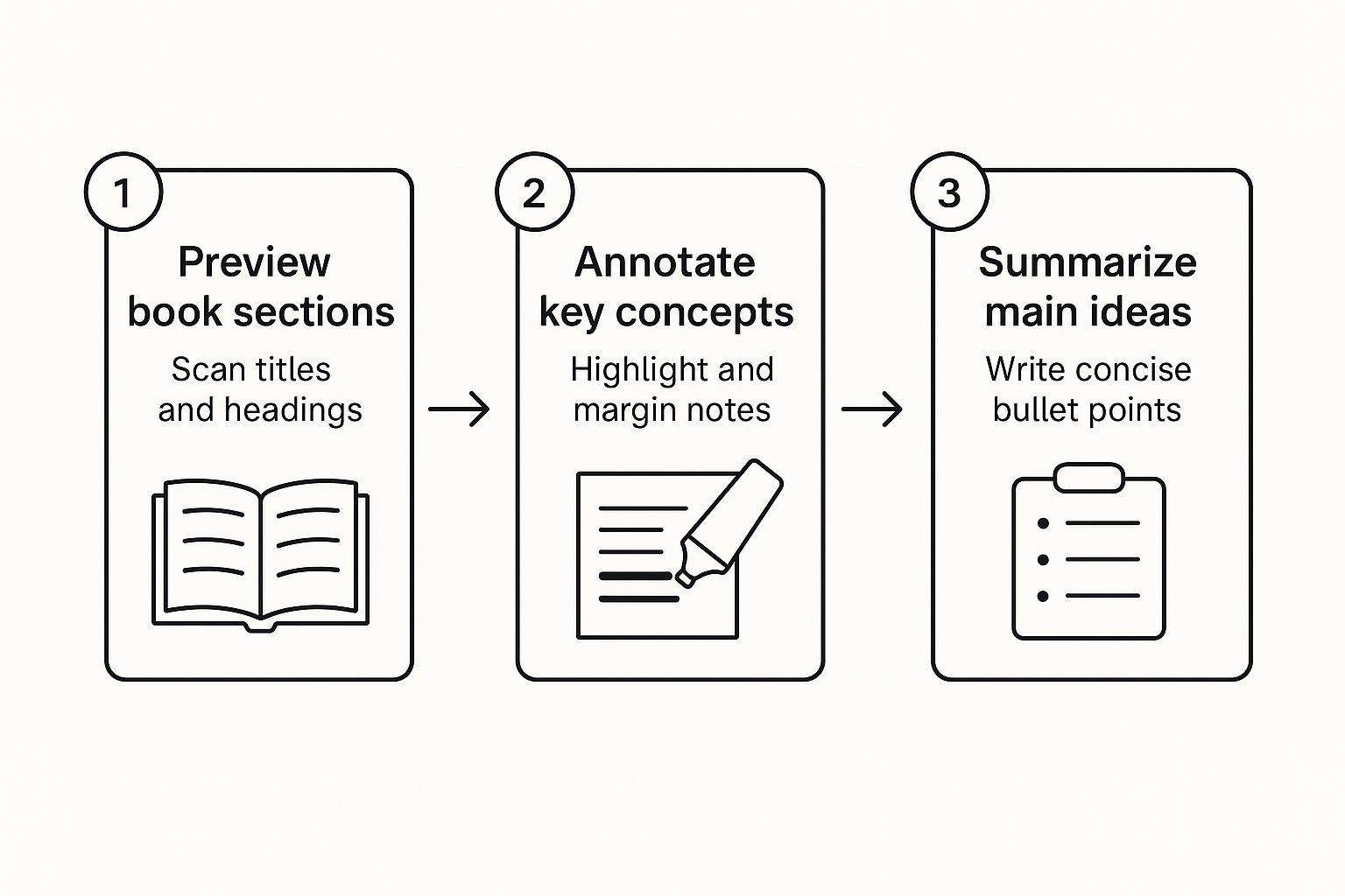 This infographic breaks down a simple, three-part process for actively engaging with a book before you even start summarizing.