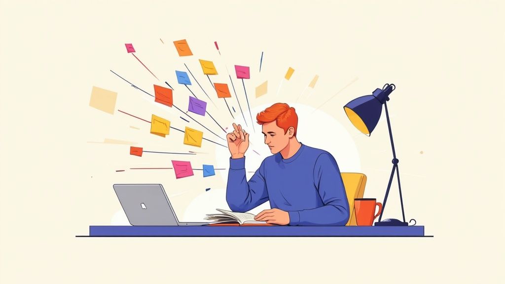 This is where the big mindset shift needs to happen. Effective note-taking isn't about collecting quotes like stamps. It’s about creating connections. The goal is to stop being a passive consumer of information and start having an active conversation with the author. You’re not just archiving their ideas—you're challenging them, interpreting them, and weaving them into your own web of knowledge.