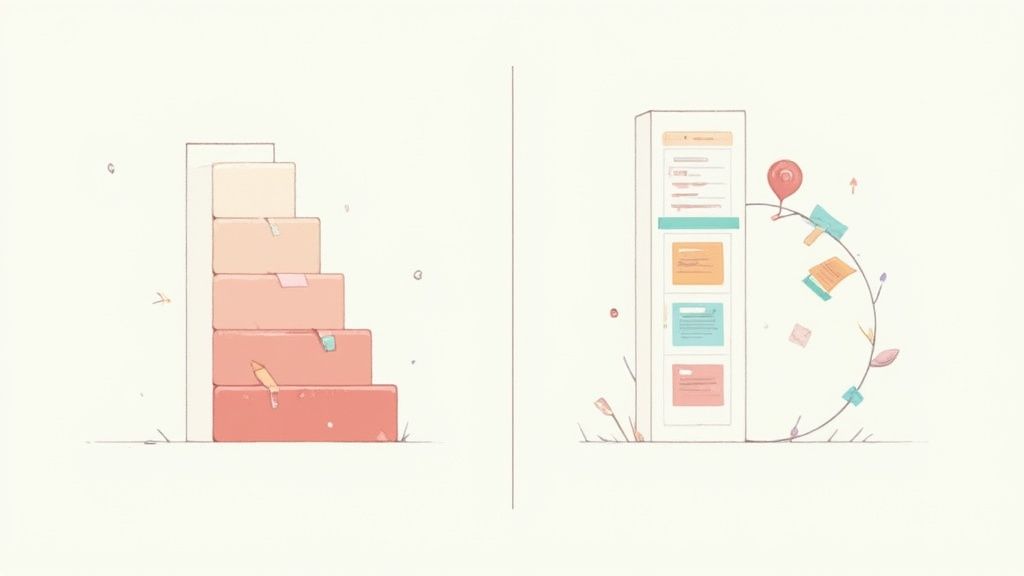 At the end of each sprint, the team delivers a small, working piece of the project. This loop allows for constant feedback from stakeholders and users, letting the team pivot and adjust priorities on the fly. When you're weighing your options, understanding the core differences between Agile vs. Waterfall methodologies is the key to making a smart decision.