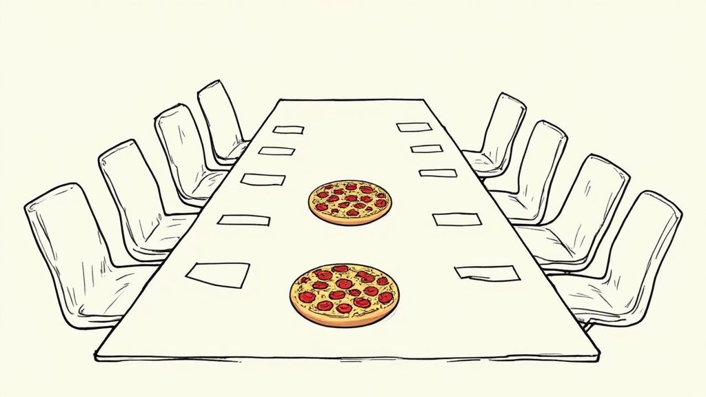 This meeting management best practice is built on the principle that smaller groups foster more engaged, productive, and decisive conversations. When every person in the room has a distinct role and can actively contribute, the meeting shifts from a passive update to an active work session. Companies like Spotify and Basecamp have built this philosophy into their agile development and decision-making processes, recognizing that smaller teams move faster and innovate more effectively.