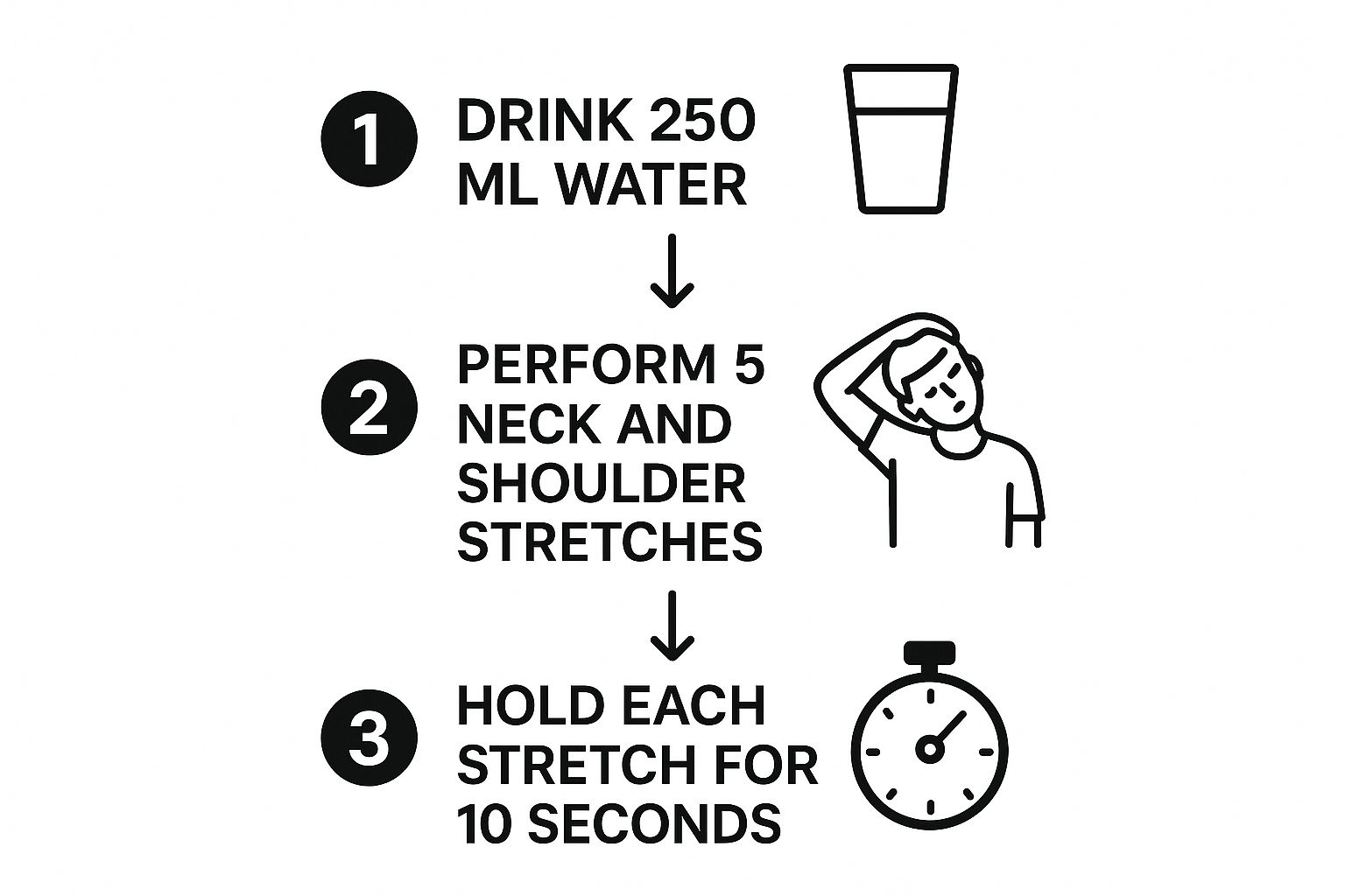 This image gives you a simple visual of a morning hydration and stretching stack.
