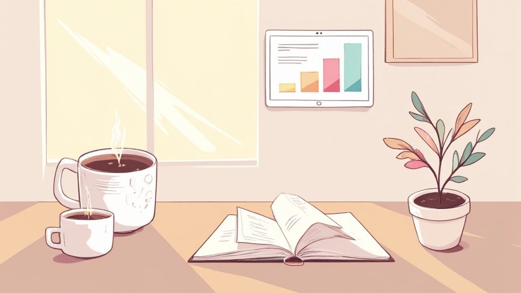 In fact, some recent stats show that a staggering 50% of global workers feel productive for less than five hours a day. It’s a clear sign that a rocky morning can completely derail focus for the rest of the day. And with 77% of employees believing that automating routine tasks could boost their output, it just highlights how valuable a structured morning is. You can dig into more of these employee productivity statistics and their drivers if you're curious.