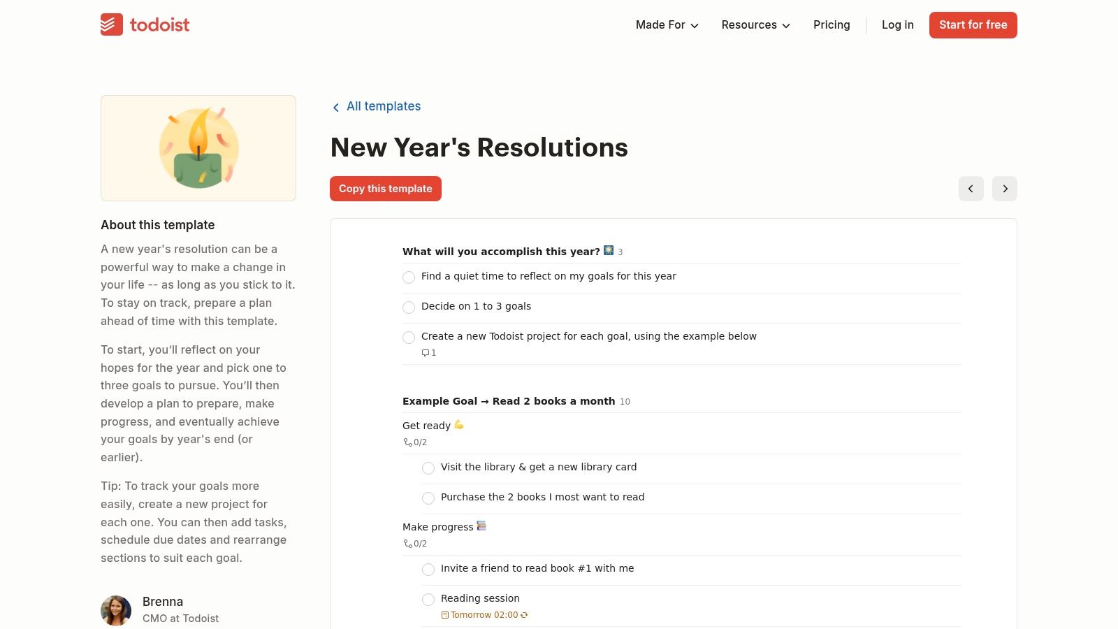 For the task-oriented professional: If your resolutions break down into a series of clear, actionable steps, Todoist Templates provide a streamlined, no-fuss approach. Its focus on task management and deadlines is perfect for those who thrive on checking items off a list.