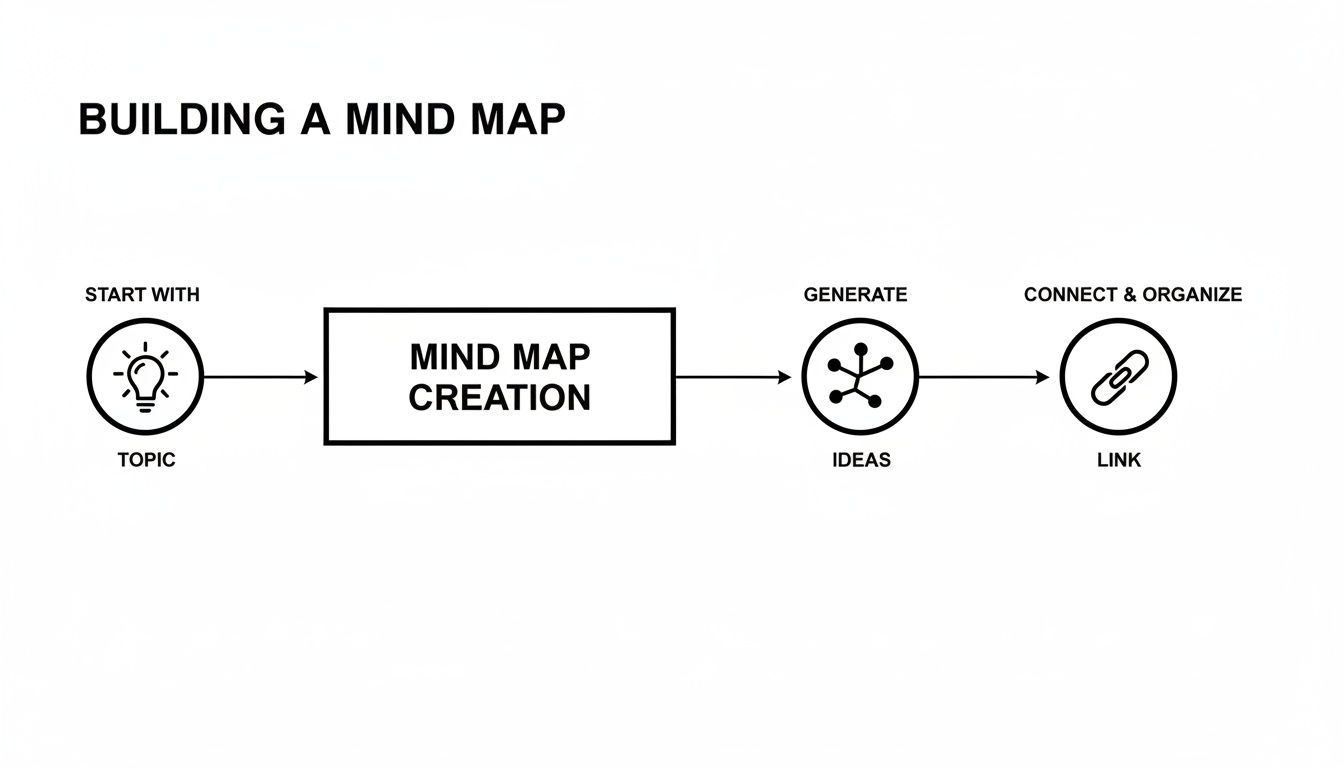 The basic flow for building any mind map is pretty simple. You start with a core topic, branch out with related ideas, and then connect those ideas to create structure.