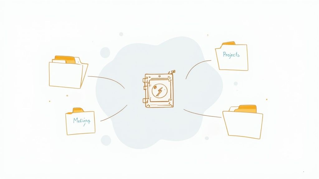 Think about a typical project launch. The client brief is a PDF in your downloads folder, your stakeholder meeting notes are in a separate document, and all the action items are dumped into a to-do list app. When you need to recall a specific decision made three weeks ago, you have to mentally retrace your steps, guess where that information lives, and then go digging. It's an inefficient process just waiting for something to fall through the cracks.