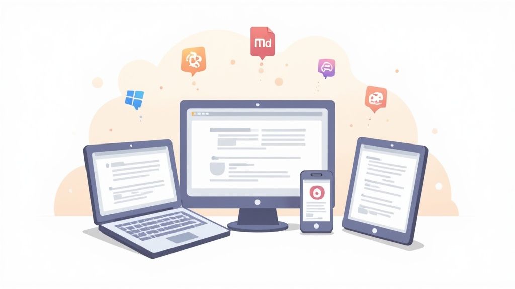 Beyond these desktop powerhouses, checking out the top online Markdown editors can give you more flexibility. They're a great option when you need to make a quick edit on the go without having to install any software.