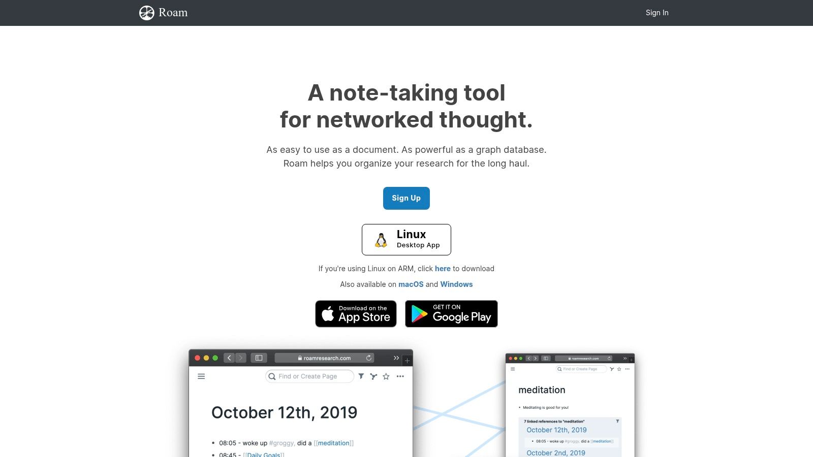 Roam Research is a browser-based tool for networked thought that pioneered many of the concepts now popular in modern personal knowledge management tools. It operates as an outliner where every bullet point is a "block" that can be referenced, embedded, and linked elsewhere. This block-based approach, combined with automatic bidirectional linking and a daily notes page, creates an incredibly low-friction environment for building a connected knowledge base, making it a favorite among academics and writers.