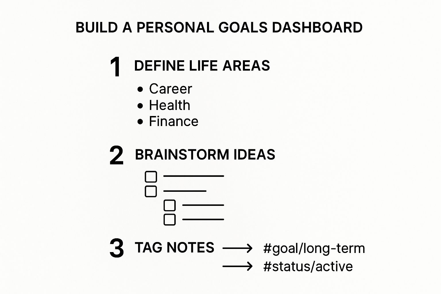 The trick is to create headings in your Obsibrain note for each area that truly resonates with you. This simple act of structuring your thoughts brings immediate clarity. If you're interested in taking this kind of organization to the next level, our guide on the P.A.R.A. folder structure is a perfect companion to this dashboard method.