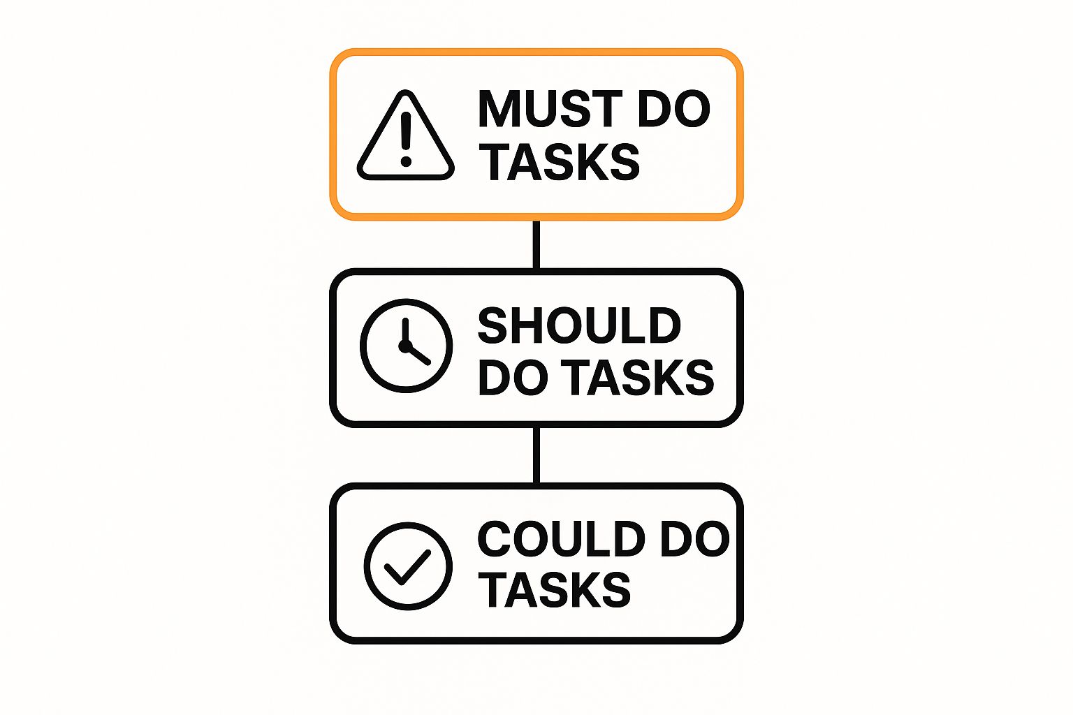 The image clearly separates tasks into "Must Do," "Should Do," and "Could Do" tiers, which is perfect for helping you focus on what's truly essential at any given moment.