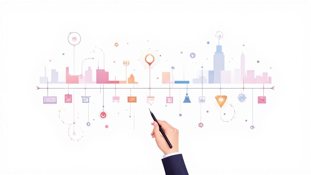 You can link a task on your timeline directly to the meeting notes where it was discussed or to the research document that inspired it. For example, a simple command like "Link this task to the Q3 kickoff meeting notes" creates an instant connection, providing context for anyone who needs it. This creates a rich, contextual plan that actually adapts as your project evolves. If you're just getting started, this excellent guide on creating your first product roadmap can provide a solid foundation for this process. This approach transforms your timeline from a document you simply check off into a dynamic workspace where the real work happens.