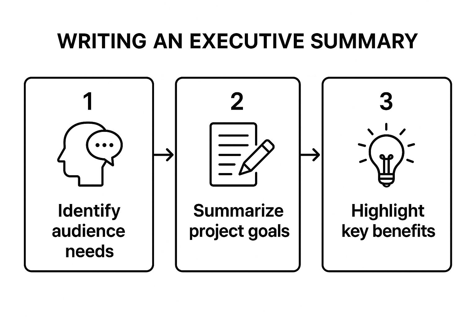 The infographic below really simplifies the thought process for writing the executive summary, which is often the most critical part of the whole document.