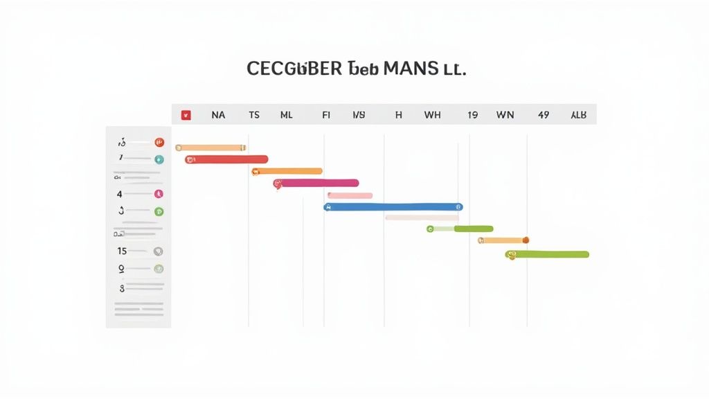 While Dataview queries are fantastic for pulling together dynamic lists, let's be honest—the human brain is wired for visuals. A list of dates is functional, but a well-designed Gantt chart or calendar can instantly reveal dependencies, overlaps, and potential bottlenecks. One look and you get it.