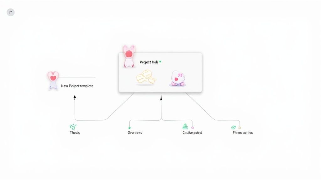 This is how you build a true command center. We're talking about a system that doesn’t just track your work but actually helps you kick it off and manage it from day one. The centerpiece of this operation is a master "Project Hub" dashboard—a single note that gives you a high-level summary of every single initiative you've got going on. Pair that with some clever templates, and this hub becomes the launchpad for everything.
