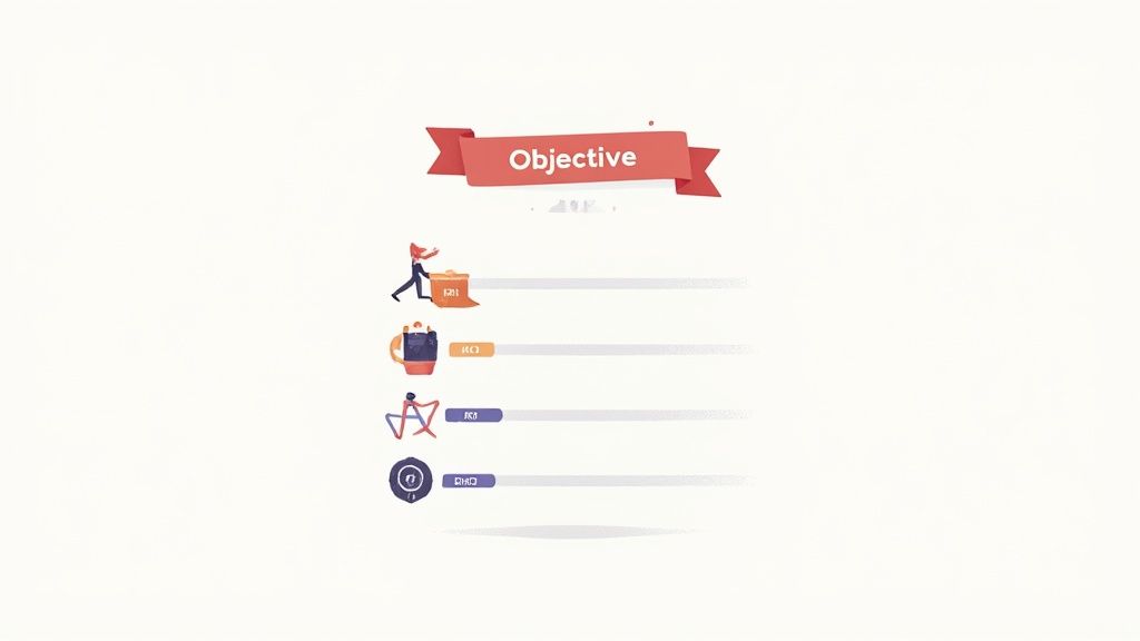 The OKR framework pairs ambitious, qualitative Objectives with specific, quantitative Key Results to measure progress. Popularized by tech giants like Intel and Google, OKRs are a powerful tool for aligning teams around high-level goals. They are the second entry in our list of sample goal statements because they excel at connecting individual effort to a larger, shared vision.
