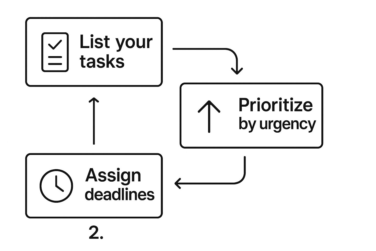 This infographic simplifies the workflow for handling tasks once they land on your dashboard, emphasizing the cycle of listing, prioritizing, and setting deadlines.