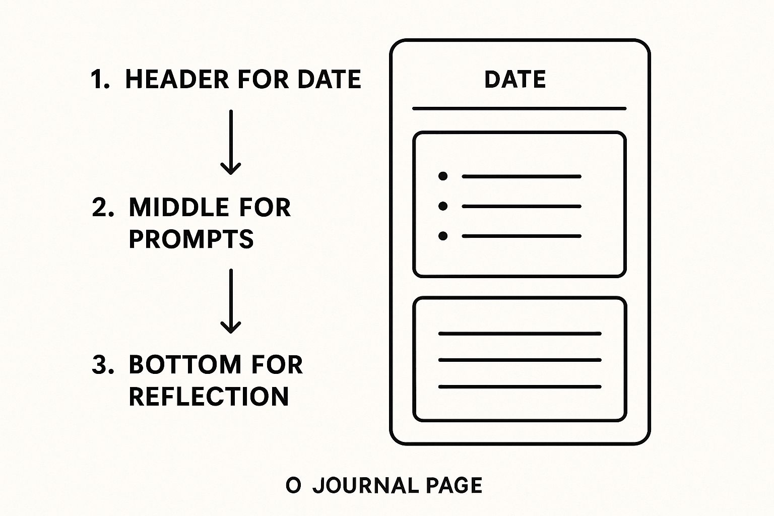 This visual shows how you can create different zones in your template—like a header, prompts, and a reflection area—to build a structured yet flexible layout. Each part of the page has a clear purpose, which helps prevent overwhelm and keeps you focused.