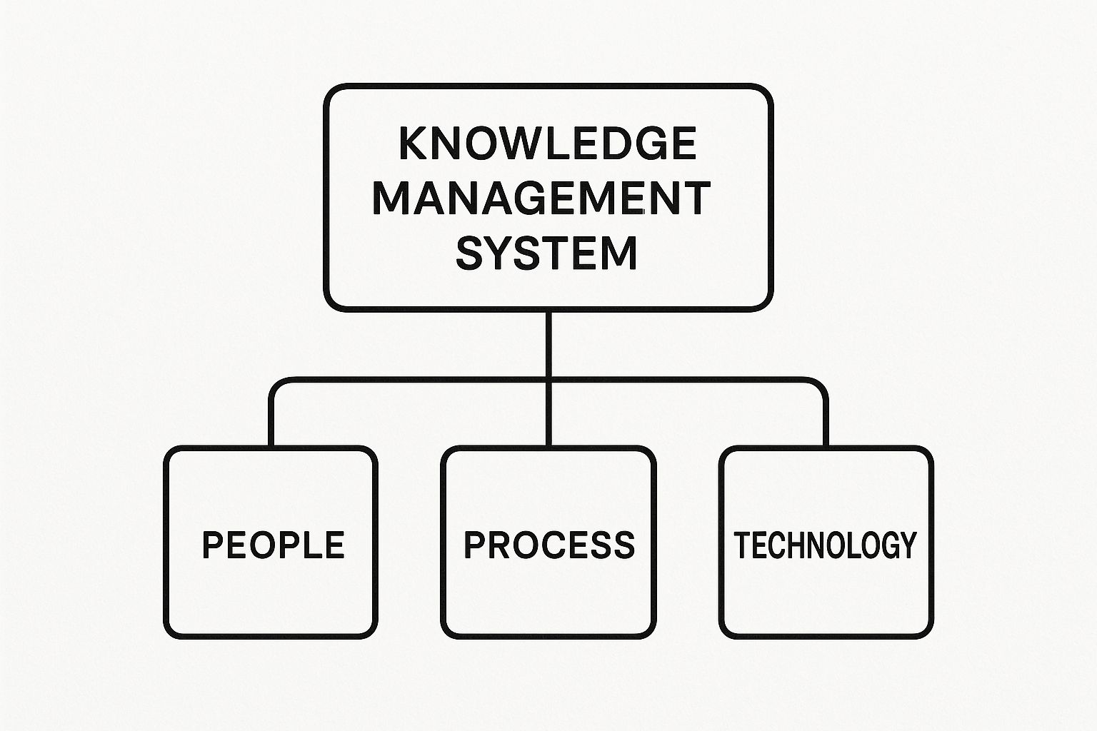 The diagram below shows the three core elements that hold up any successful knowledge management system: People, Process, and Technology.