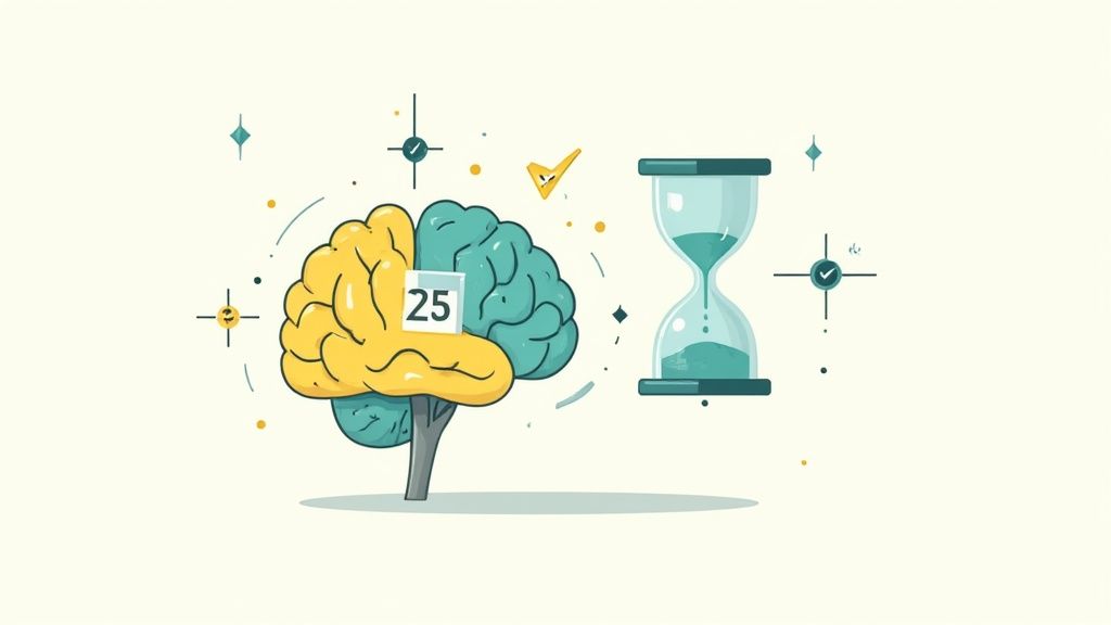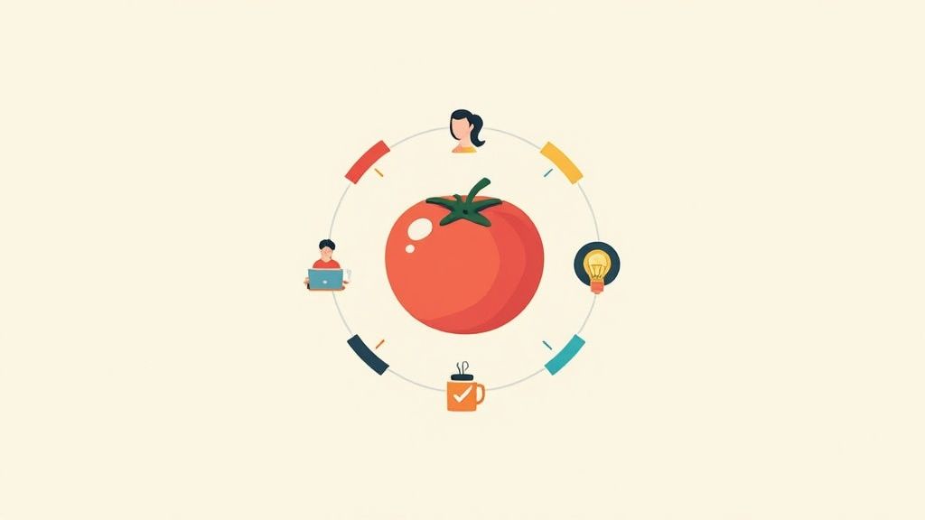 The Pomodoro Technique is a simple time management method that breaks your workday into focused 25-minute sprints, punctuated by short, rejuvenating breaks. This cyclical system is designed to sharpen your concentration, fend off mental fatigue, and ultimately boost your productivity by giving your work a clear, predictable rhythm.