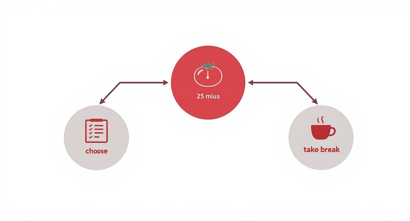 Instead of staring down an intimidating, unstructured block of work, you commit to just one short, manageable 25-minute sprint of pure focus. This single interval is called a "Pomodoro." During this time, your only job is to work on one pre-defined task. No multitasking. No checking email. No distractions.
